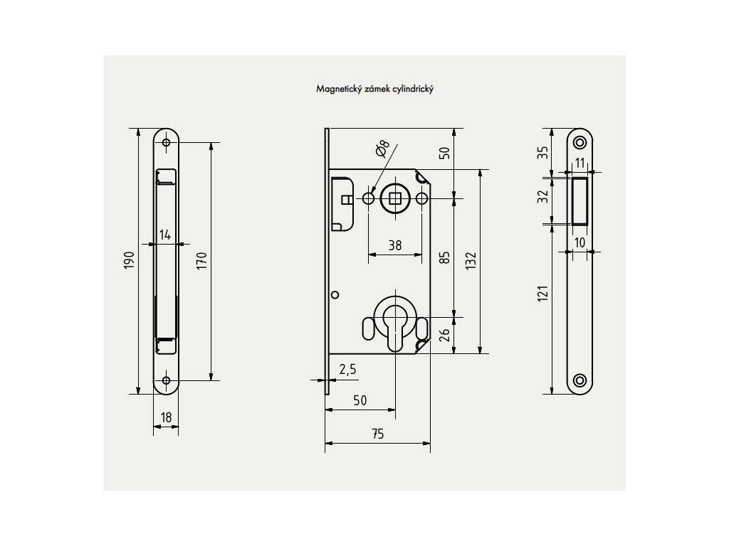 Magnetické zámky pro polodrážkové/falcové i bezfalcové dveře.